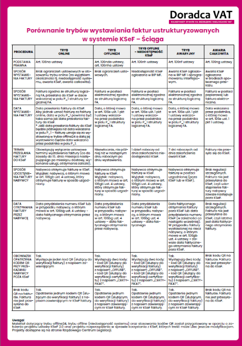 Porównanie trybów wystawiania faktur ustrukturyzowanych w KSeF – online, offline24 i tryb awaryjny